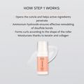 Step 1 is designed for the first stage of the eyelash lift procedure. It gently and effectively softens the cuticle of the lashes, thus lifting the scales, making it easier for the active components to penetrate inside the lashes. The product has a pH level of 9.0-9.5.