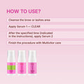2-я группа: волоски ресниц средней толщины или тонкие — время экспозиции 3-6 минут для Серума 1 и не менее 6 минут для Серума 2;